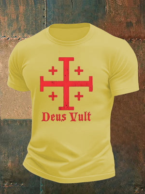 Jerusalem Cross Deus Vult Cotton T-shirt