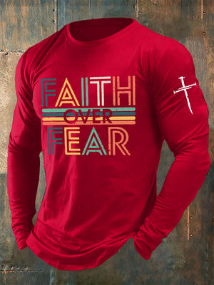 🔥Buy 3 Get 15% Off🔥Men's casual long-sleeved faith overcomes fear printed long-sleeved T-shirt