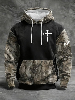Men's Casual Retro Print Long Sleeve Hooded Sweatshirt