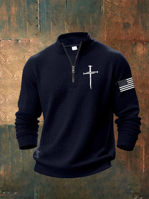 Men's Faith Print Zip Collar Waffle Sweatshirt