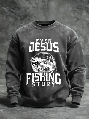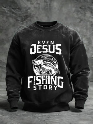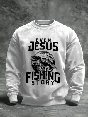 Men's Fishing Story Sweatshirt Jesus Fishing Funny Sweatshirt