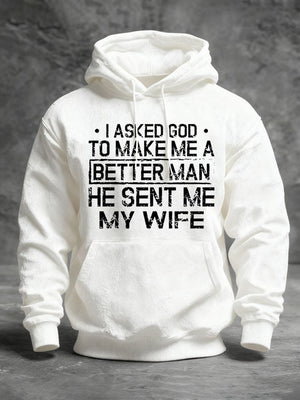 🔥Buy 3 Get 15% Off🔥Men's I Asked God To Make Me A Better Man He Sent Me My Wife Print Hoodie