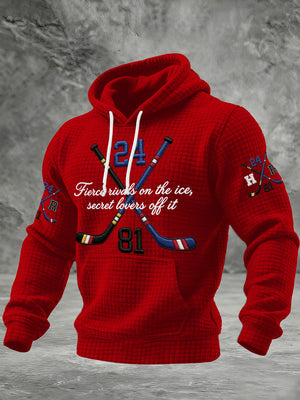 Men's Ice Hockey Fierce Rivals On The Ice, Secret Lovers Off It Printed Casual Hoodie