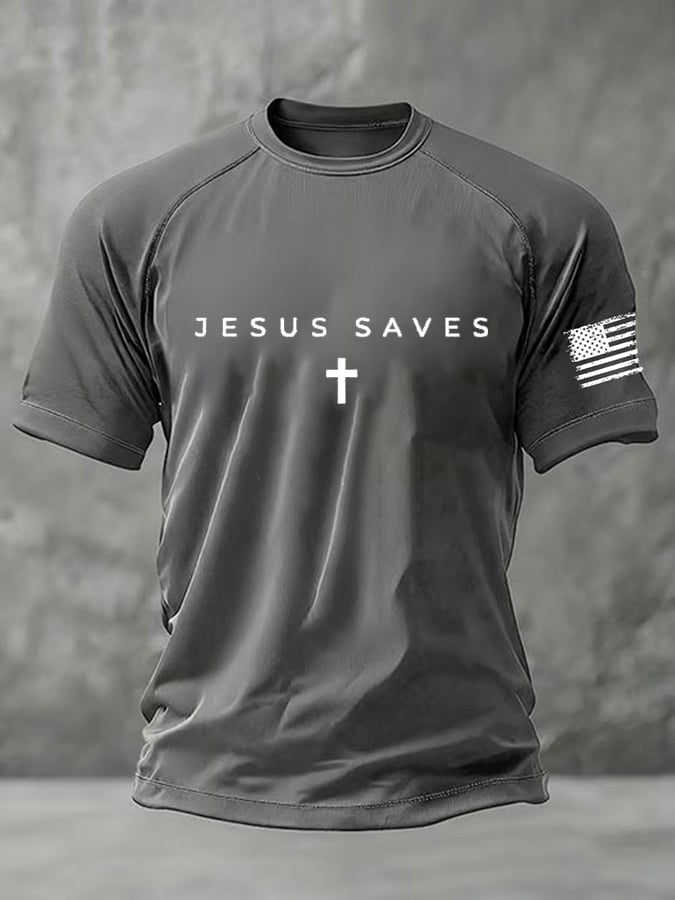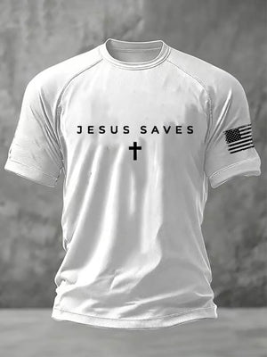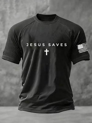 Men's Jesus Saves Faith Print Round Neck T-Shirt