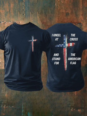 🔥Buy 3 Get 15% Off🔥Men's Stand For The Flag Kneel For The Cross Printed Casual T-Shirt