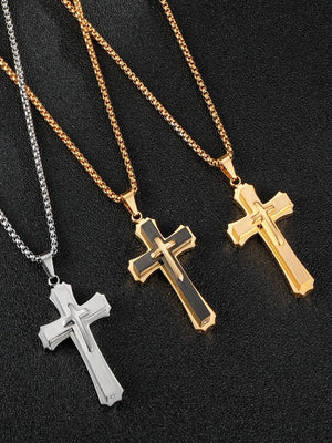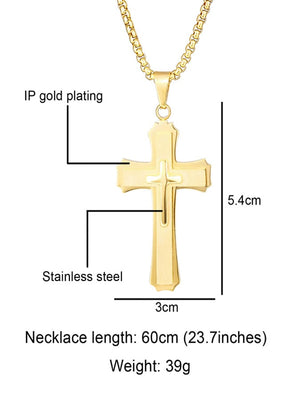 Men's Street Cross Pendant Titanium Three Layer Three-Dimensional Steel Necklace