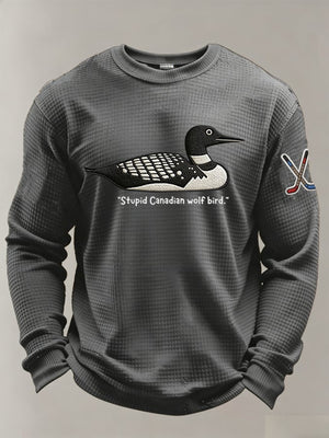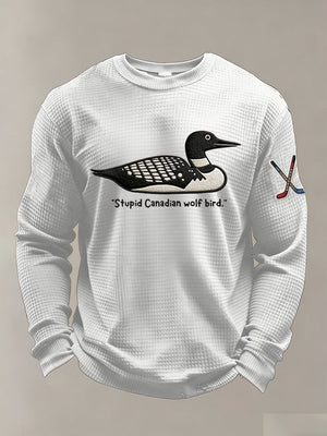 Men's Stupid Canadian wolf bird Print Long-Sleeved T-Shirt