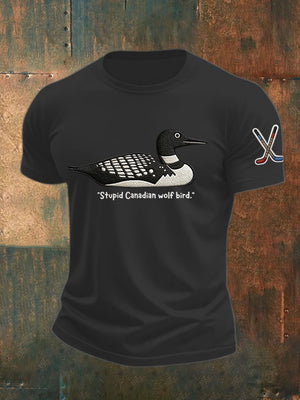 Men's Stupid Canadian Wolf Bird Print T-Shirt