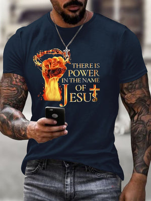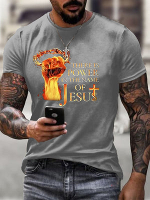 Men's There Is Power In The Name Of Jesus Print Casual T-Shirt