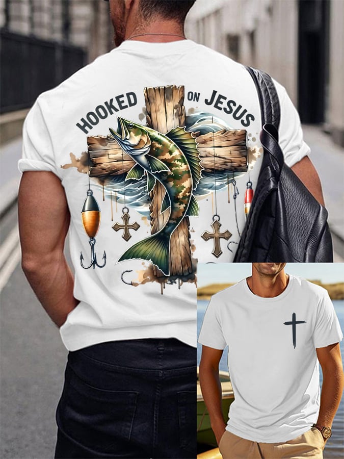 Men's Vintage Faith Attracted by Jesus Fishing Print T-Shirt