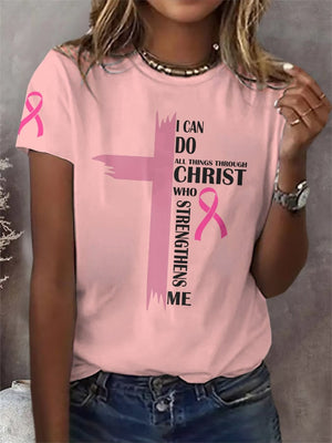 Retro Breast Cancer Awareness Faith Cross I Can Do All Things Through Christ Who Strengthens Me Print T-Shirt
