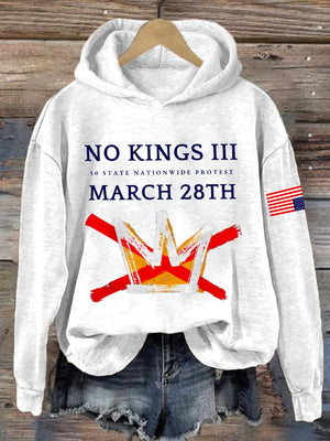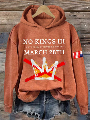 🔥Buy 3 Get 15% Off🔥Retro No Kings III 50 State Nationwide Protest March 28th Print Hoodie