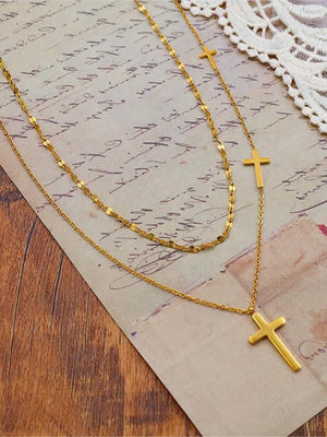 Simple Cross Double Layer Titanium Steel 18k Clavicle Necklace