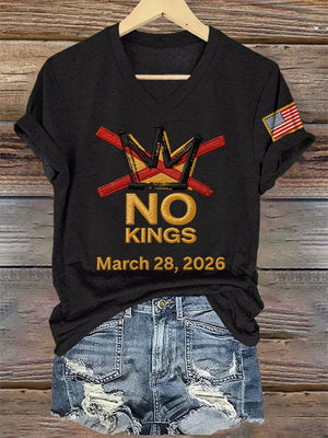 🔥Buy 3 Get 15% Off🔥V-Neck Retro No Kings Day March 28 2026 Print T-Shirt