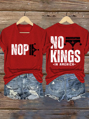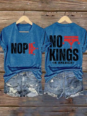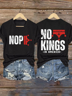 🔥Buy 3 Get 15% Off🔥V-Neck Retro No Kings In America Print T-Shirt