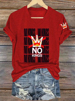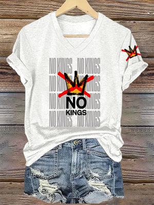 🔥Buy 3 Get 15% Off🔥V-Neck Retro No Kings In America Print T-Shirt