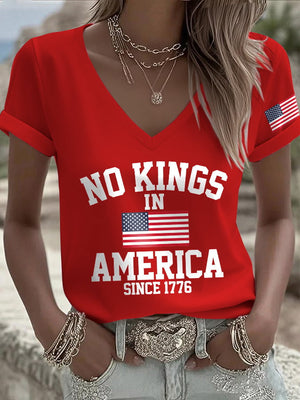 🔥Buy 3 Get 15% Off🔥V-Neck Retro No Kings In America Since 1776 Print T-Shirt