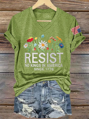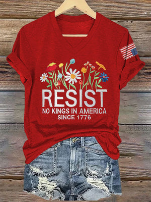 🔥Buy 3 Get 15% Off🔥V-Neck Retro Resist No Kings In America Since 1776 Print T-Shirt