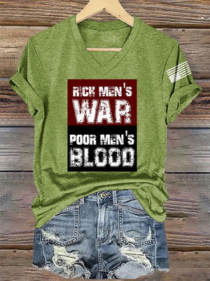 🔥Buy 3 Get 15% Off🔥V-Neck Retro Rich Men's War Poor Men's Blood Print T-Shirt
