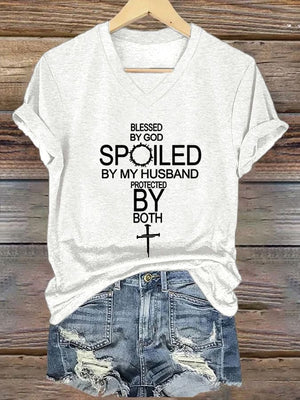 Women's Blessed By God Spoiled By My Husband Protected By Both T-shirt