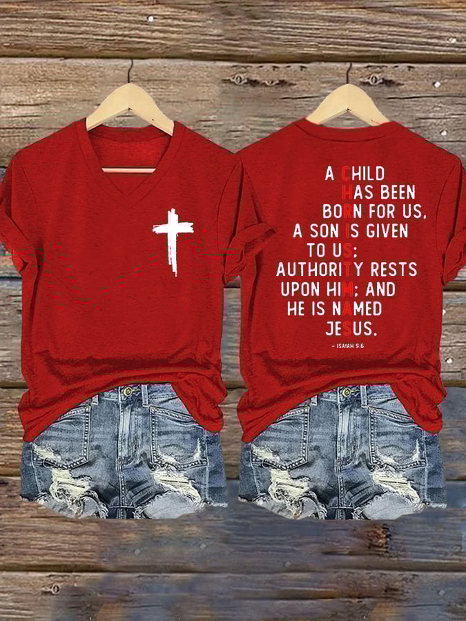 Women's Casual Printed V-Neck T-Shirt