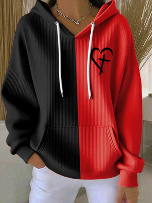Women's Casual Retro Faith Contrast Color Textured Hoodie