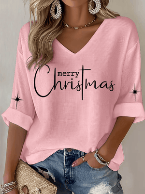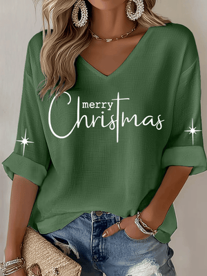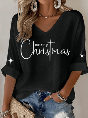 Women's Christmas Faith Print Waffle Long Sleeve T-Shirt