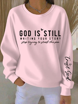 Women's Faith God Is Still Writing Your Story Stop Trying To Steal The Pen Trust God Print Sweatshirt