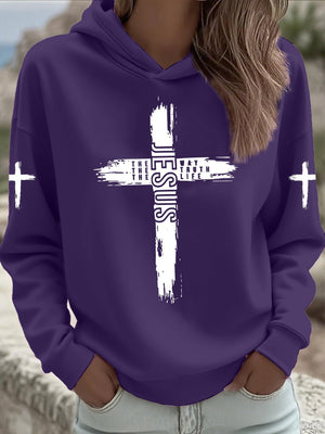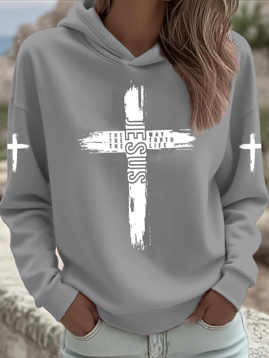 Women's Faith Print Casual Hooded Sweatshirt