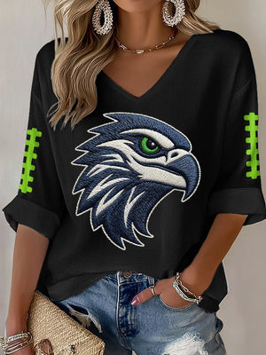 Women's Football Print Waffle Long Sleeve T-Shirt