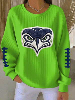 Women's Football Printed Knit Crew Neck Long-Sleeved Top