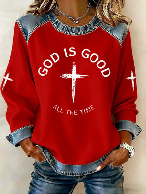 Women's God Is Good All The Time Print Casual Sweatshirt