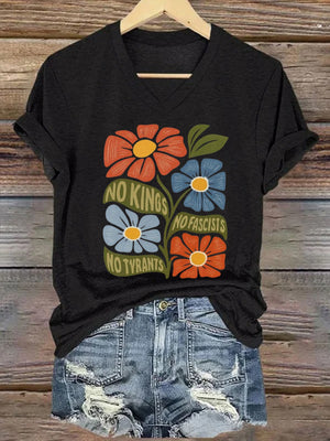 🔥Buy 3 Get 15% Off🔥Women's No Kings No Fascists No Tyrants No Nazis Print T-shirt