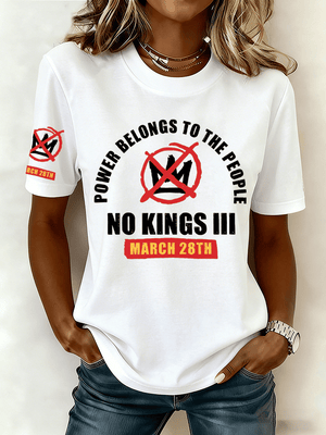 🔥Buy 3 Get 15% Off🔥Women's "POWER BELONGS TO THE PEOPLE NO KINGS MARCH 28TH" Printed Retro Short-Sleeve T-Shirt