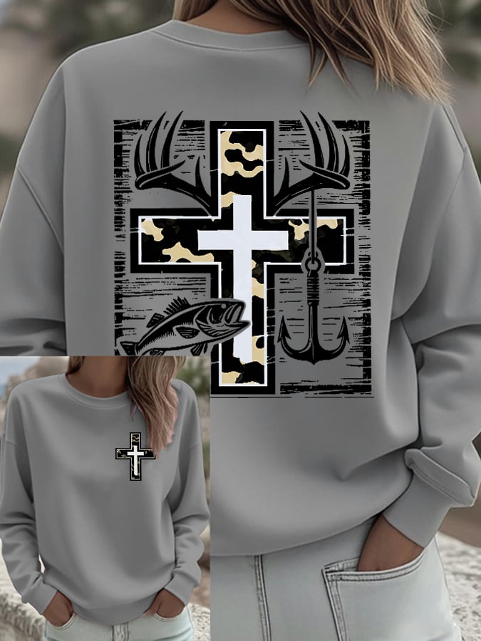 Women's Retro Faith Fishing Hunting Print Sweatshirt