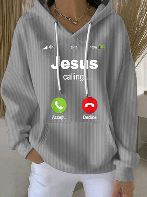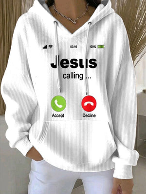 Women's Retro Jesus Calling Print Casual Hoodie