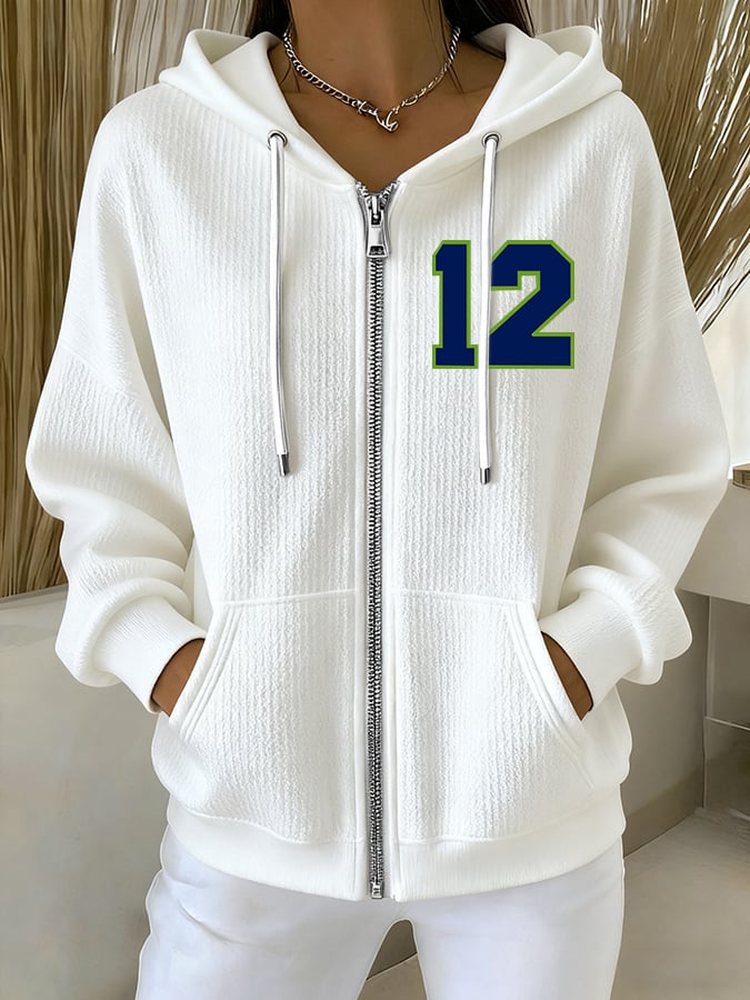 Women's Rugby Print Casual Hooded Sweatshirt