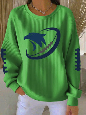 Women's Rugby Print Knit Crew Neck Long Sleeve Top