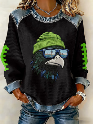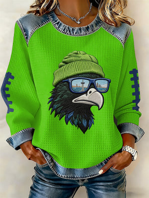 Women's rugby print long-sleeved sweatshirt