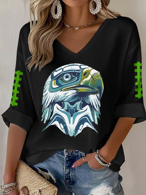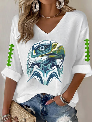 Women's Rugby Print Waffle Long Sleeve T-Shirt
