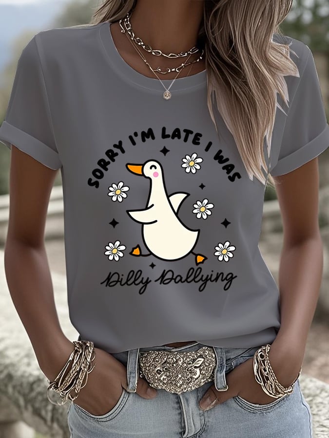 Women's Sorry I'm Late His Timing Not Mine Ecclesiastes 3:1 Funny Silly Goose T-Shirt