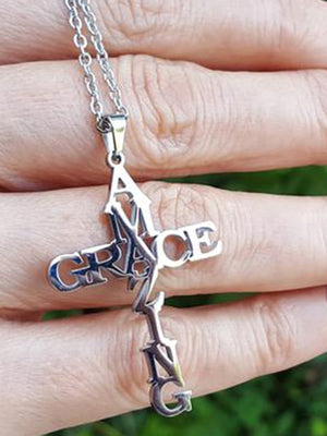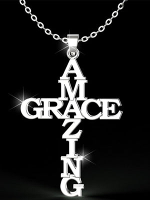 Women's Stainless Steel AMAZE GRACE Faith Cross Necklace