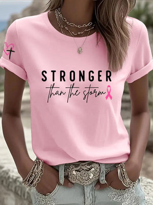 Women's Stronger Than The Storm Breast Cancer Awareness Print Casual T-shirt