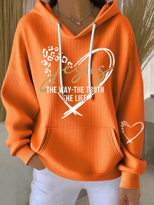 Women's Vintage Faith The Way The Truth The Life Printed Casual Ribbed Hoodie