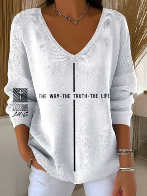 Women's Vintage Faith The Way The Truth The Life Printed Long Sleeve Pit Fabric Top