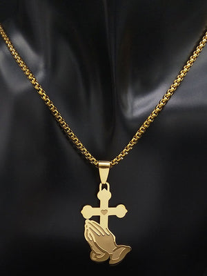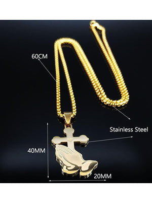Women's Vintage Palm Cross Stainless Steel Necklace