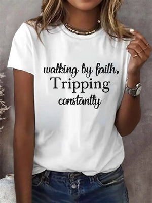 Women's Walking By Faith Tripping Constantly Print T-Shirt