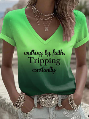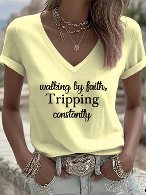 Women's Walking By Faith Tripping Constantly Print T-Shirt
